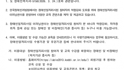 2026년 장애인일자리 사업 이러닝센터 교육 콘텐츠 활용 안내