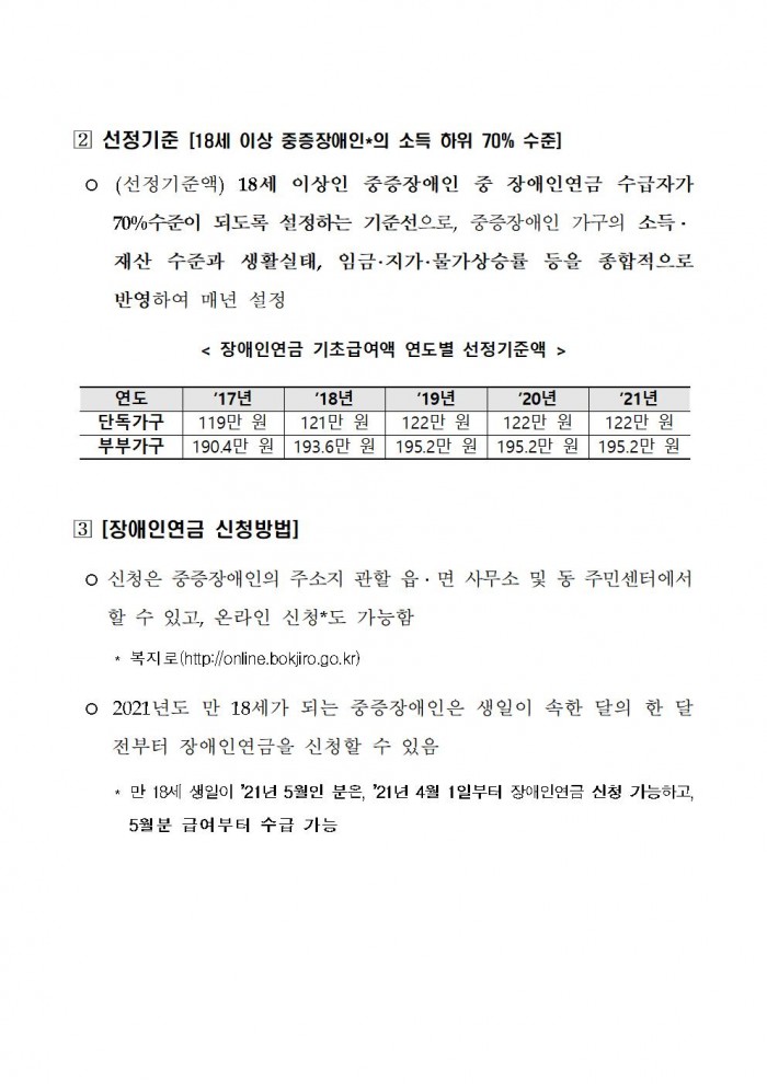 1월부터 모든 장애인연금 수급자 기초급여액 월 최대 30만 원 지급 최고관리자 0 362 2021.03.19 11:37 1월부터 모든 장애인연금 수급자 기초급여액 월 최대 30만 원 지급
