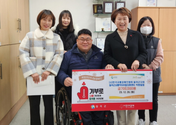 (사)한국교통장애인협회 칠곡군지회(지회장 정재성), 칠곡군교통약자이동지원센터(센터장 정재성)는 12월 26일(화)에 칠곡군청을 방문하여 ‘희망2024나눔캠페인’에 성금을 전달했습니다.