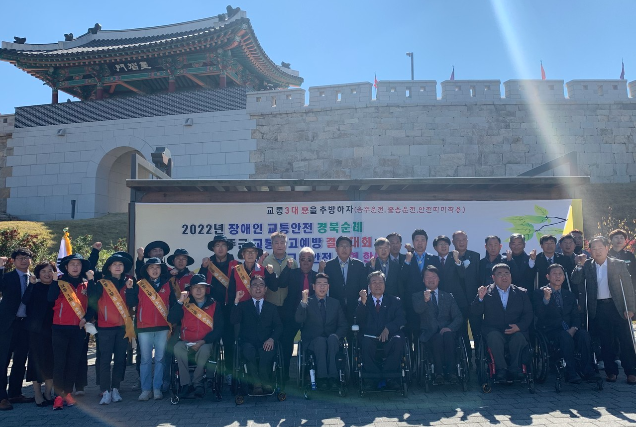 한국교통장애인협회 성주군지회는 10월 25일 성주역사테마파크에서 150여명이 참석한 가운데 ‘2022년 성주군 교통사고예방 결의대회 및 제1회 교통안전체험 한마당’을 개최했다.