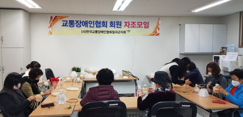 교통장애인협회 회원 자조모임 <라탄공예> 2회차 최고관리자 0 508 2021.11.26 16:24 (사)한국교통장애인협회 칠곡군지회에서는 11월24일 수요일(오후 14:00~17:00) 회원10명과 지회 교육실에 도며 전문 강사님의 교육 아래 라탄 전등 만들기 수업을 진행하였다. 지난번 바구니 만들기에 이어 이번에는 전등을 만들었고 전등이 조금 더 손이 많이 가는 관계로 3시간가량의 수업이 이루어졌다. 한 회원은 “내가 만든 전등에서 불이 들어오는 것이 너무 신기하고 따로 키트를 구입할 수 있다면 더 구입해서 하나 더 만들고 싶을 정도로 예쁘고 마음에 든다”는 소감을 밝혔다.