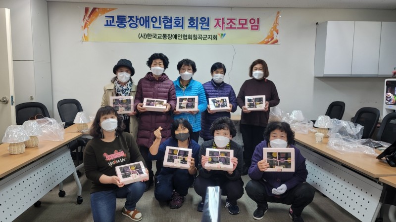 교통장애인협회 회원 자조모임 <양갱 만들기> 최고관리자 0 586 2021.12.03 09:01 (사)한국교통장애인협회 칠곡군지회(지회장 정재성)이 교통장애인 자조모임활동의 일환으로 지난 11월 29일 ‘양갱 만들기 수업’을 진행했다. 이날 자조모임 회원들은 양갱을 만들어 협회 직원들을 비롯해 가족들과 나누며 장애인의 사회 참여 역량을 강화하고 성취감을 느낄 수 있도록 하는 계기를 마련했다.
