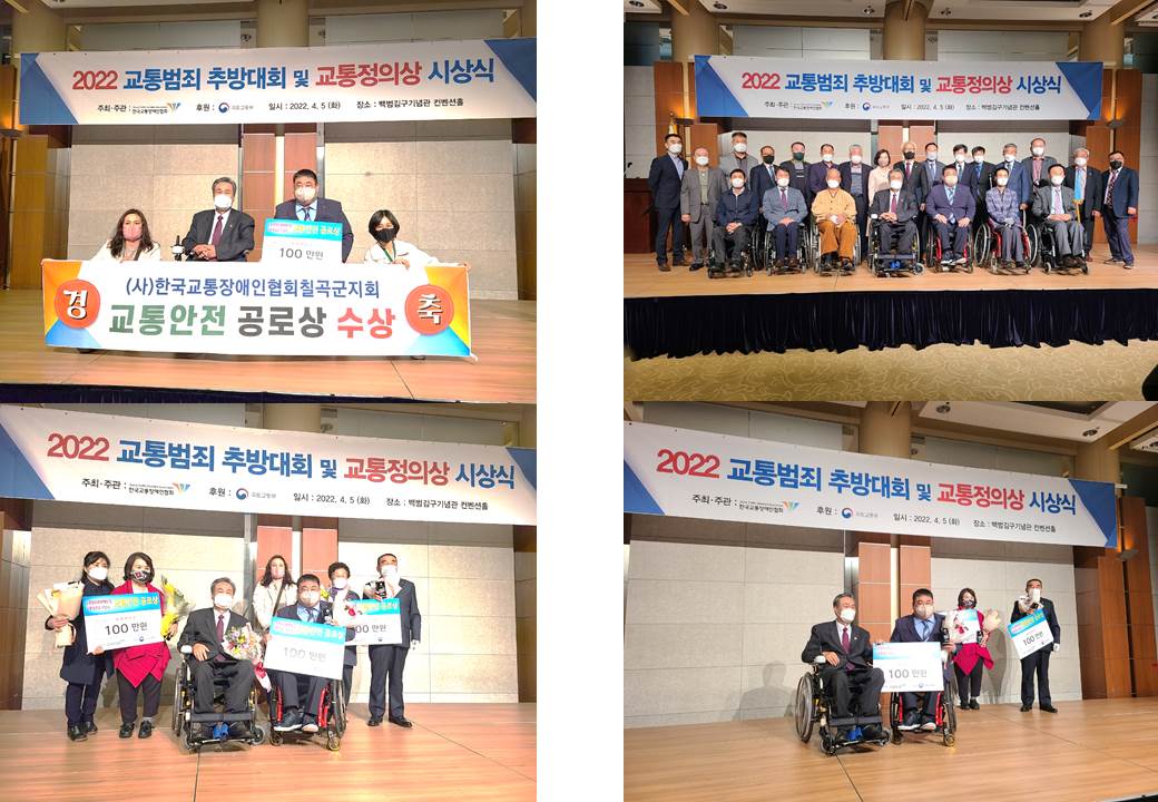 2022년 교통범죄 추방대회및 교통 정의상 시상식을 진행하여 한국교통장애인협회 칠곡군 지회가 교통 정의상 공로상을 수상하였습니다.