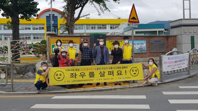 (사)한국교통장애인협회 칠곡군지회 (지회장 정재성)은 관내 지천면 신동초등학교 어린이보호구역(스쿨존)에 '노란발자국'이 설치하였다.