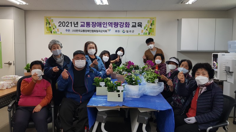 (사)한국교통장애인협회 칠곡군지회에서는 11월1일 월요일(오전 10:00~12:00) 회원 분들과 한국교통장애인협회 칠곡군지회 교육장에서 원예 수업을 진행하였다.