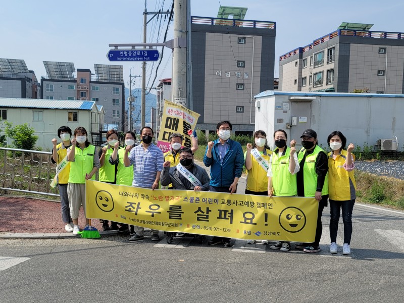 사)한국교통장애인협회 칠곡군지회(지회장 정재성)는 school zone내 초등학교 학생들의 안전한 보행환경 조성을 위해 민식이법 시행과 함께 학생들의 안전한 통학로 구축을 위한 사업의 일환으로 2020년 6곳의 초등학교에 노란발자국을 설치한데 이어 2021년 5월14일(금) 북삼초등학교에 첫 노란발자국 설치를 시작하였고 앞으로 7곳의 학교에 노란발자국을 더 설치할 예정에 있다.