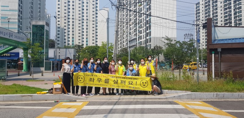 대교초등학교 교감선생님을 비롯한 (사)한국교통장애인협회 칠곡군지회 임직원과 회원, 녹색어머니회 회원들은 더운 날씨에도 불구하고 아침부터 밖으로 나와 어린이 교통안전을 위해 노란발자국 설치에 힘썼다.