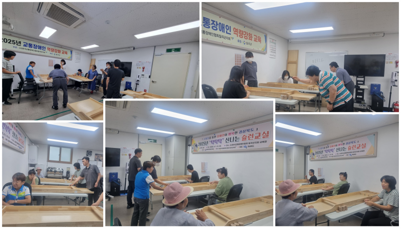 2025년 15회차 장애인 생활체육 슐런교실 실시 최고관리자 0 143 2025.08.12 11:24 2025년 15회차 장애인 생활체육 슐런교실 실시목적 : 교통장애인의 체육활동과 생활의활력 충전대상 : 회원 및 교통사고 장애인장소 : 칠곡군지회 교육장일시 : 2025년 8월 11일(사)한국교통장애인협회 칠곡군지회는 2025년 8월 11일 15회차 장애인 생활체육 슐런교실 실시하였다.생활체육 슐런교실은 4월 부터 9월 까지 총 20회기로 구성하였다.