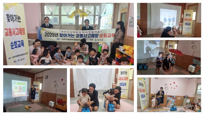 효성꽃자리어린이집에서 '찾아가는 교통사고예방 순회교육' 실시 최고관리자 0 167 2025.07.11 13:54 효성꽃자리어린이집에서 '찾아가는 교통사고예방 순회교육' 실시목적 : 교통사고 예방 및 안전교육 대상 : 어린이집 유아 장소 : 효성꽃자리어린이집일시 : 2025년 7월 10일(사)한국교통장애인협회 칠곡군 지회는 2025년 7월 10일 교통사고 예방을 위하여 효성꽃자리어린이집에서 '찾아가는 교통사고예방 순회교육' 실시