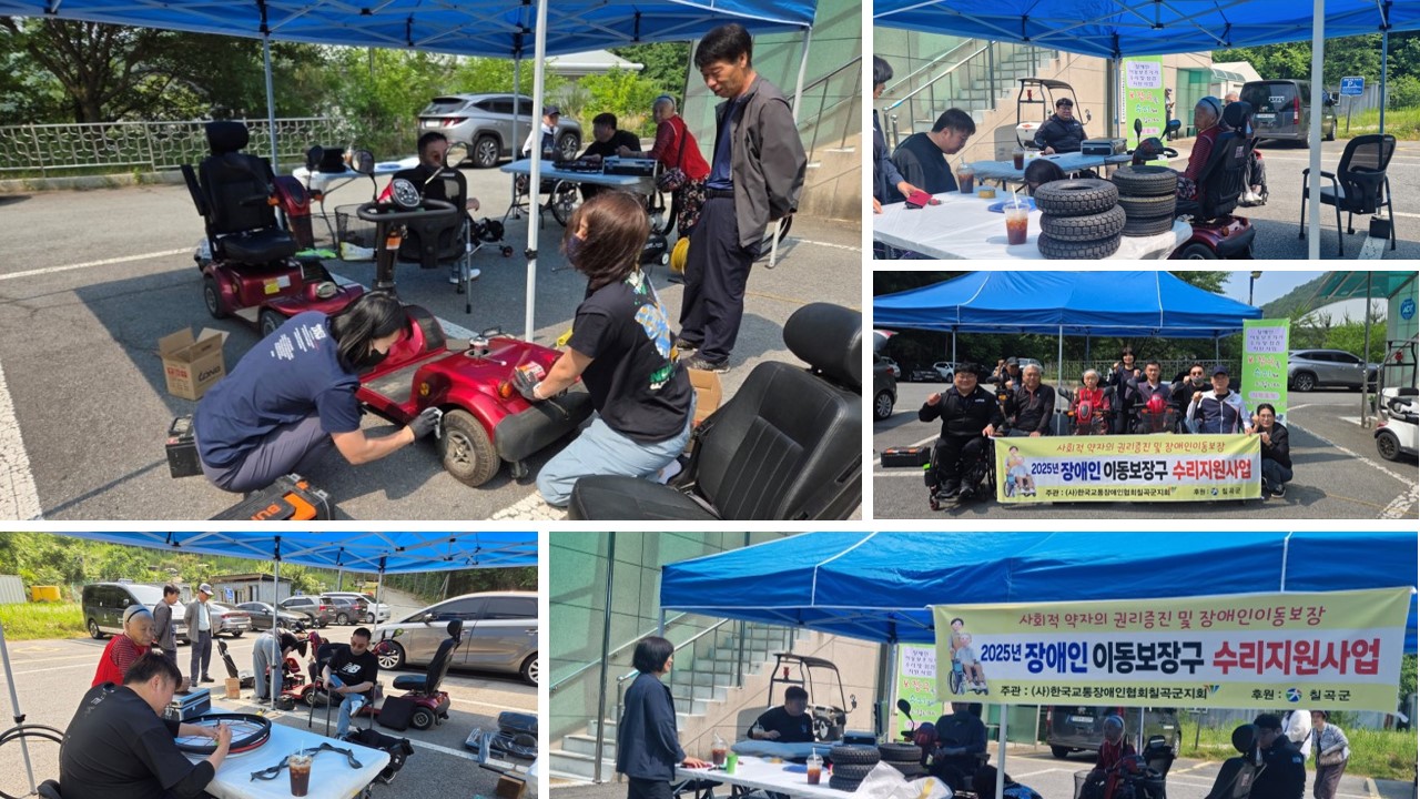 2025년 교통사고장애인 이동보장구 지원 및 수리사업 최고관리자 0 199 2025.05.29 14:33 2025년 교통사고장애인 이동보장구 지원 및 수리사업목적 : 사회적 약자의 권리증진 및 장애인 이동권 보장대상 : 회원 및 교통사고 장애인장소 : 칠곡군지회일시 : 2025년 5월 29일2025년 5월 29일 한국교통장애인협회 칠곡군지회가 주관 하고 칠곡군이 후원하는 사회적 약자의 권리증진 및 장애인 이동권 보장을 위해 교통사고장애인 이동보장구 지원 및 수리사업을 실시하였다.