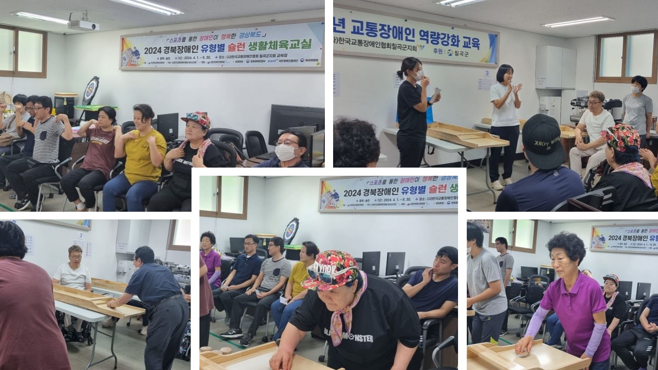 2024년 17회차 장애인 생활체육 슐런교실 최고관리자 0 489 2024.08.01 15:30 (사)한국교통장애인협회 칠곡군지회 2024년 7월 29일 17회차 장애인 생활체육 슐런교실 실시