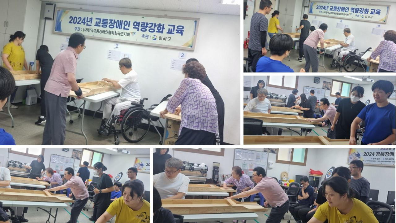 2024년 13회차 장애인 생활체육 슐런교실 최고관리자 0 441 2024.07.02 14:31 (사)한국교통장애인협회 칠곡군지회 2024년 7월 1일 13회차 장애인 생활체육 슐런교실 실시