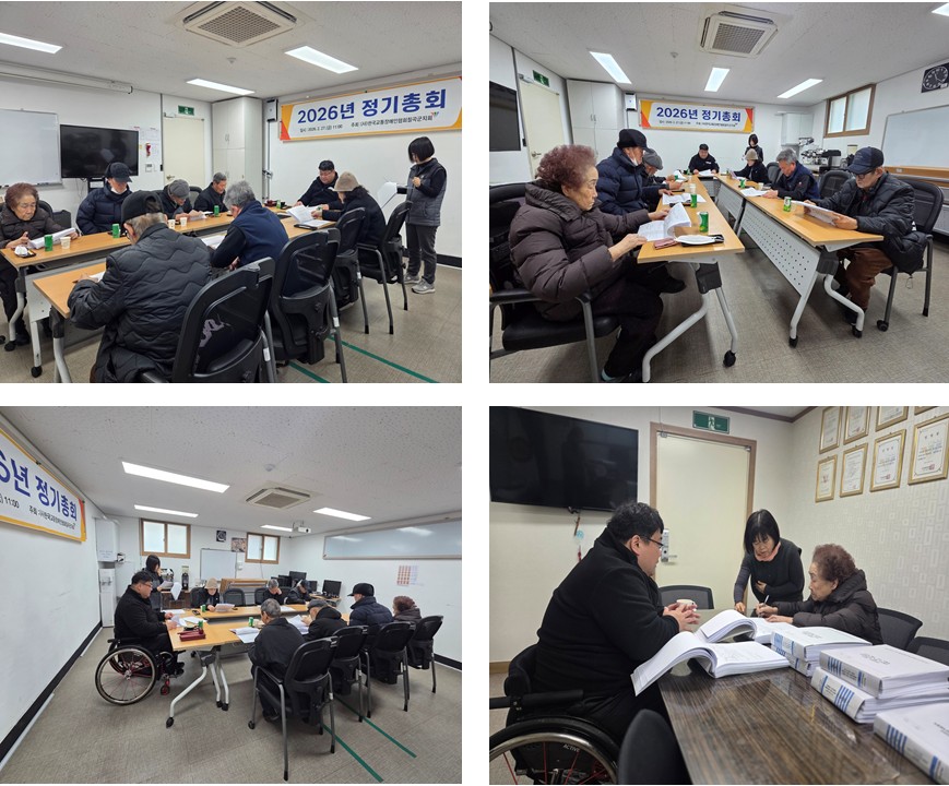2026년 첫 정기총회 실시를 하였습니다. 최고관리자 0 35 03.05 09:20 한국교통장애인협회 칠곡군 지회는 임원 회원들이 참석한 가운데 2026년 첫 정기총회를 열고, 작년 한 해 동안의 사업 추진 성과를 공유하며 올해 사업계획과 예산안을 심의·의결하는 시간을 가졌습니다.